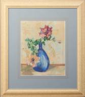 Bella van Beek Stroeve (1900-1960), petunia's in blauwe vaas tegen een chinoiseriebehang, aquarel op papier, r.o. gesigneerd, 33 × 28 cm