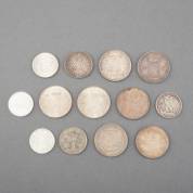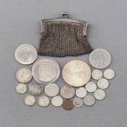 Divers zilveren muntgeld, waaronder 3 Duitse mark, 1813-1913, en Amerikaanse dollar, 1896, gewicht 256 gram