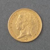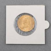 Gouden 20-Lire, Victorius Emmanuel II, Italië, 1859, gewicht 5 gram, Ø 2,2 cm, in doosje