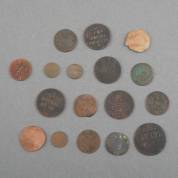 Diverse oude munten, Nederlands en Nederlands Indië, waaronder duit Zeeland 1780