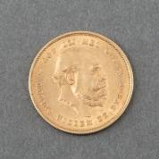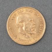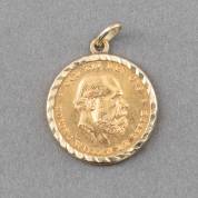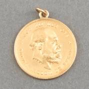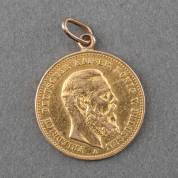 Gouden Duitse 10-mark, 1888, vermaakt tot hanger, gewicht 4,0 gram, Ø 1,9 cm