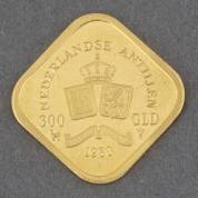 Gouden 300-gulden, Nederlandse Antillen, 1980, gewicht 5,0 gram, 18 × 18 mm, in 's Rijks Munt cassette