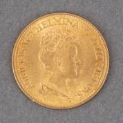 Gouden tientje, Wilhelmina met hermelijnen mantel, 1917, gewicht 6,7 gram