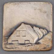 2e gehalte zilveren herdenkingspenning, watersnoodramp 1926-1976, voorzijde met boerderijen onder water, meester: Bob Maase, Maasbommel, Zierikzee, 1977 gewicht 41 gram, circa 4,5 × 4,5 cm
