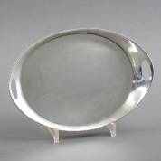 Schuitvormig 2e gehalte zilveren dienblaadje met parelrand, 1975, gewicht 328 gram, 3,5 × 25,5 × 17,5 cm -met inscriptie op één zijkant-