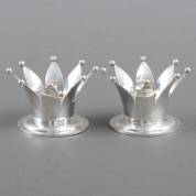 Paar 2e gehalte zilveren kroonvormige tafelkandelaars, model Contessa, meester: Gerritsen & Van Kempen, Zeist, 1960, gewicht 164 gram, circa 6 × Ø 10 cm