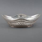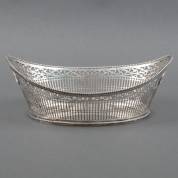 Ovale 1e gehalte zilveren vlechtwerk soezenmand met scharnierend hengsel en kabelranden, meester: William Plummer, Londen, 1791, gewicht 535 gram, 10 × 32 × 26,5 cm -bodem met krassen en deukjes-