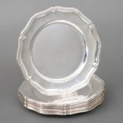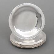 Veertien 2e gehalte zilveren onderborden met geaccoleerde en geprofileerde rand, Finland, 1954, gewicht 4547 gram, circa Ø 25 cm