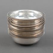 Veertien Oosterse BWZG vingerkommen (600/1000), met gegraveerde rand en band, 20e eeuw, gewicht 1521 gram, 4 × Ø 12,5 cm