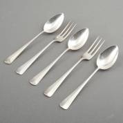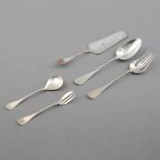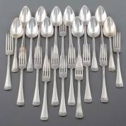 Twaalf 2e gehalte zilveren dinercouverts, Haags lof, meester: J.M. van Kempen & Zonen, Voorschoten, gewicht 1427 gram, lengte lepel 21 cm -gemonogrammeerd-