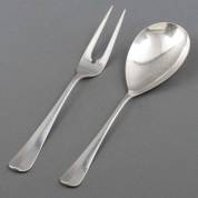 2e gehalte zilveren rijstschep en vleesvork, Haags lofje, meester: Schoonhovensche Zilverfabriek, H. Hooijkaas, Schoonhoven, 1963 en 1964, gewicht 180 gram, vleesvork 24,5 cm