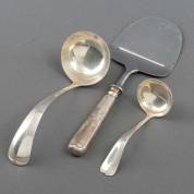 Divers 2e gehalte zilveren diengerei, Haags lof, bestaande uit: kaasschaaf, sauslepel en roomlepel, meester: Koninklijke van Kempen en Begeer, Zeist, 1963 en 1964, gewicht zilver 97 gram, kaasschaaf brutogewicht 86 gram, kaasschaaf 21 cm