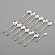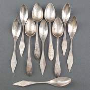 Twaalf 2e gehalte zilveren theelepels met gedraaid steel en bekroond door ronde knop, meester: Hermanus Hartman, Schoonhoven, 1889-1910, gewicht 110 gram, 11,5 cm