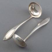 Paar 2e gehalte zilveren sauslepels, puntfilet, meester: J.M. van Kempen & Zonen, Voorschoten, 1922, gewicht 129 gram, 16 cm