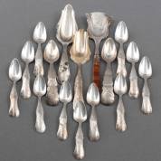 Diverse zilveren lepeltjes en schepjes, diverse makers en gehaltes, waaronder: tien apostellepeltjes, gewicht 277 gram