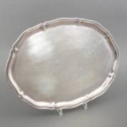 Gecontourneerd 2e gehalte zilveren dienblad, meester: D.J. Aubert, 's-Gravenhage, tweede helft 20e eeuw, gewicht 1011 gram, 45 × 33 cm