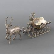 2e gehalte zilveren tafelstuk in de vorm van een arrenslee met hert, Nederland, 1990, gewicht 345 gram, 11 × 26 × 6,5 cm