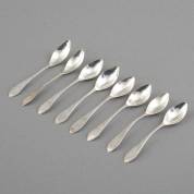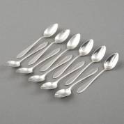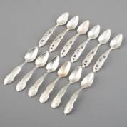 Elf 2e gehalte zilveren koffielepeltjes, puntfilet, meester: Zilverfabriek Voorschoten, 20e eeuw, gewicht 101 gram, lengte 10 cm