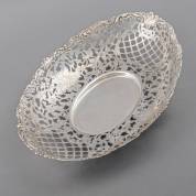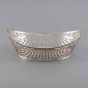 2e gehalte zilveren broodmand, ajourgezaagd met spijlen en afgezet met parelrand, meester: J.M. van Kempen & Zonen, Voorschoten, 1918, gewicht 534 gram, 10,5 × 31 × 19 cm