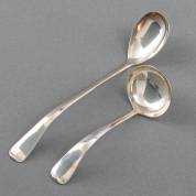 2e gehalte zilveren compôtelepel en roomlepel, Haags lofje, meester: Koninklijke van Kempen en Begeer, Zeist, 1966, gewicht 62 gram, lengte compôtelepel 17 cm