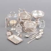Divers zilverwerk, diverse gehaltes, waaronder coupe, pillendoosje en twee strooiers, gewicht zilver 650 gram