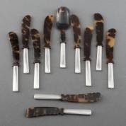 Elfdelig faux schildpad kaviaarbestek met geribde 1e gehalte zilveren heften, meester: Victor Mayer, Pforzheim, begin 20e eeuw, brutogewicht 219 gram, schep 15 cm