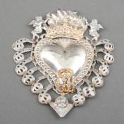 BWZG ex-voto, in de vorm van een heilig hart, geflankeerd door twee cherubijnen, vergulde kroon en gekroond monogram CR, mogelijk Italië, 19e eeuw, gewicht 15,8 gram, 14,5 × 12,5 cm -defecten-