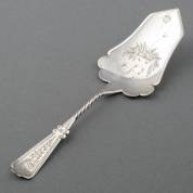2e gehalte zilveren taartschep met getorste steel en fijne gravering, meester: A.J. Driessen, Schoonhoven, 1896, gewicht 73 gram, 22 cm
