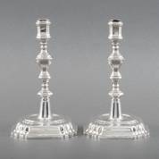 Paar octagonale zilveren Louis Quatorze kandelaars, onduidelijk gekeurd, vermoedelijk Duitsland, 18e eeuw, gewicht 707 gram, hoogte 20 cm -stam enigzins uit het lood-