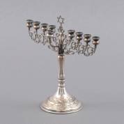 2e gehalte zilveren chanoekia met Davidster, 20e eeuw, brutogewicht 213 gram, 18 × 17,5 × 7,5 cm