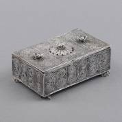BWZG filigrain Besamim doos, niet gekeurd, 18e/19e eeuw, gewicht 464 gram, 6,5 × 14,5 × 9 cm -één pootje deels defect maar aanwezig-