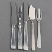 Twee 2e gehalte zilveren fruitcouverts en een 2e gehalte zilveren botermesje, model 206 van Anton van Kempen, botermesje meester: Gerritsen & Van Kempen, Zeist, 1949, brutogewicht 175 gram