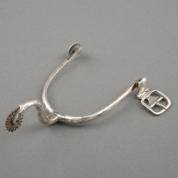 2e gehalte zilveren spoor met gespsluiting en draaiend ijzeren wiel, brutogewicht 88 gram, 5 × 12 × 8 cm