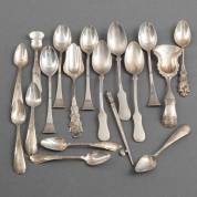Diverse zilveren lepeltjes, voornamelijk 2e gehalte, 19e en 20e eeuw, daarbij: 2e gehalte zilveren vulpotlood, 19e eeuw, gewicht 168 gram -enkele met defecten-