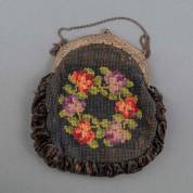 Geborduurde tas met 2e gehalte zilveren beugel, Nederland, 1920, brutogewicht 178 gram, 22 cm