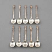 Tien 2e gehalte zilveren apostellepeltjes, gewicht 106 gram, 10,5 cm
