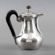 1e gehalte zilveren kan met gezwarte houten greep, België, 1831-1868, brutogewicht 471 gram, 20 × 17,5 × 12 cm -gebruikssporen-