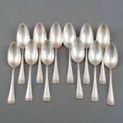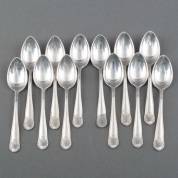 Twaalf 2e gehalte zilveren toespijslepels, Haags lof, meester: Koninklijke van Kempen en Begeer, Zeist, tweede helft 20e eeuw, gewicht 333 gram, 14 cm