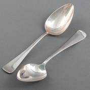 Paar 2e gehalte zilveren groentedienlepels, Haags lofje, meester: Koninklijke van Kempen en Begeer, Zeist, 1964, gewicht 213 gram, 25 cm