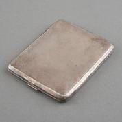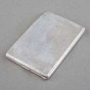 1e gehalte zilveren sigarettenkoker met geguillocheerd decor, vermeil binnenzijde met monogram 'S G', gewicht 144 gram, 1 × 10,5 × 8,5 cm -deukje-