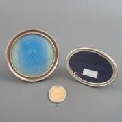 Ronde 2e gehalte zilveren fotolijst, Spanje, 20e eeuw, grote ovale 1e gehalte zilveren fotolijst en kleine 2e gehalte zilveren fotolijst, alle met parelrandje, ronde fotomaat Ø 13 cm