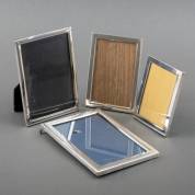 Vier rechthoekige 1e en 2e gehalte zilveren fotolijsten met gladde rand, kleinste 13 × 9 cm, fotomaat 12 × 8 cm -diverse gebruikssporen, één zonder standaard-