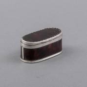 Ovaal schildpad snuifdoosje met BWZG monturen, vermoedelijk koloniaal, 18e of mogelijk 19e eeuw, 4 × 8,5 × 4 cm -gebruikssporen-