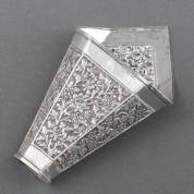 Koloniale BWZG sirih- of betelbladhouder, met reliëfdecor van bloem- en bladmotieven, Indonesië, 18e/19e eeuw, gewicht 64 gram, 13,5 × 8 cm