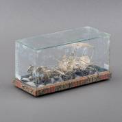 Zilveren filigrain model van een Aziatisch rijtuig met twee paarden, in vitrine, 23 × 10 × 11,5 -vitrine slordig dichtgelijmd-