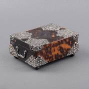 Schildpadbelijmd kistje met BWZG Djokja beslag op de hoeken, staand op bolpootjes, 19e eeuw, 7 × 16 × 11,5 cm