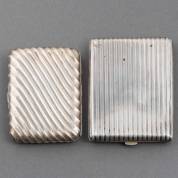 Twee zilveren sigarettendoosjes, één 1e gehalte, brutogewicht 79 gram, de ander 3e gehalte, brutogewicht 115 gram, grootste circa 10 × 8 cm -beide met wat deukjes-