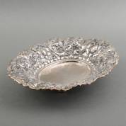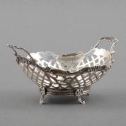 2e gehalte zilveren bonbonmandje met greepjes, meester: H. Hooijkaas, Schoonhoven, 1973, 7 × 15 × 10,5 cm, gewicht 94 gram