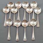Twaalf 2e gehalte zilveren bouillonlepels, Haags lof, meester: Gerritsen & van Kempen, Zeist, 1926-1961, gewicht 359 gram, 13,5 cm