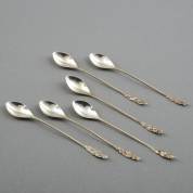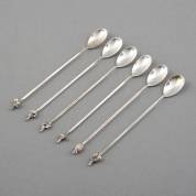 Zes 1e gehalte zilveren limonadelepels bekroond met vruchten, meester: Koninklijk van Kempen en Begeer, Zeist, tweede helft 20e eeuw, gewicht 94 gram, 18 cm
